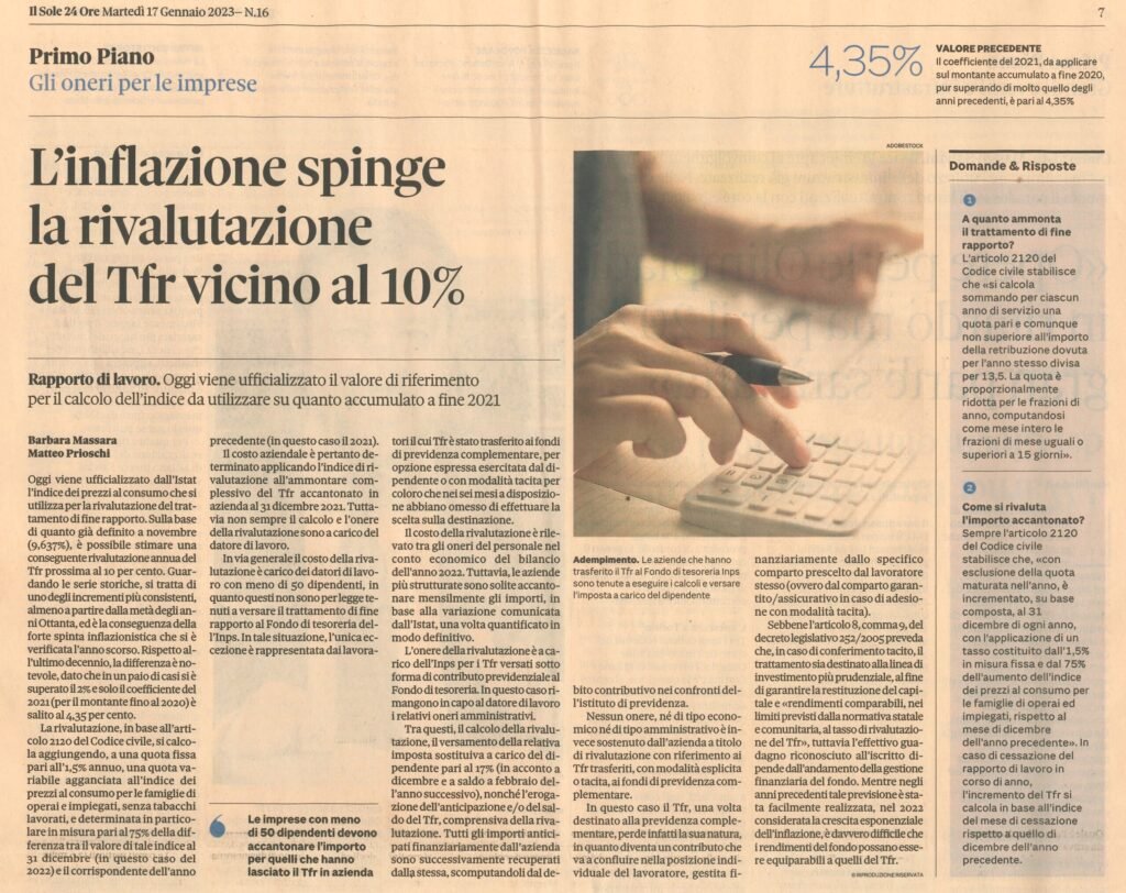 Come recita l’art. 2120 del Codice Civile la rivalutazione di tale voce può incidere in modo sostanziale sui costi aziendali!