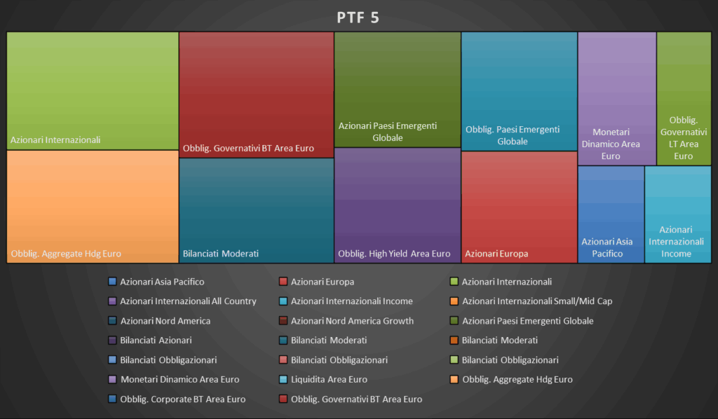 Di conseguenza, non si è reso necessario un ribilanciamento delle percentuali tra componente azionaria, obbligazionaria e monetaria. La costruzione è rimasta stabile, confermando la validità dell’approccio metodologico: diversificazione globale, utilizzo di ETF efficienti e selezione ponderata di strumenti obbligazionari e monetari coerenti con i diversi profili di rischio.
